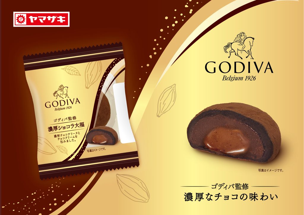 山崎 ショコラ大福はベルギーチョコを使用した濃厚なショコラテリーヌとくちどけのよいチョコソースをやわらかなチョコ大福生地で包んだゴディバ監修のお菓子です。