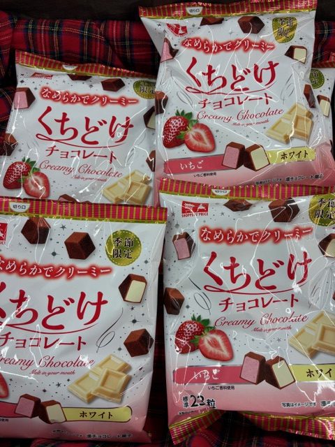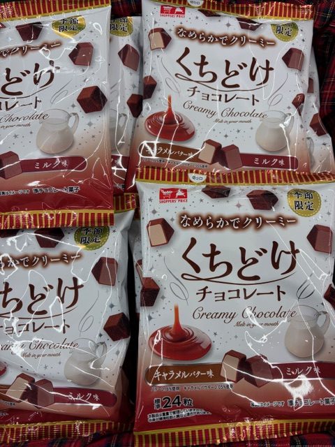 ショッパーズプライス くちどけチョコレートです。キャラメル&ミルクといちご&ホワイトの2種類です。