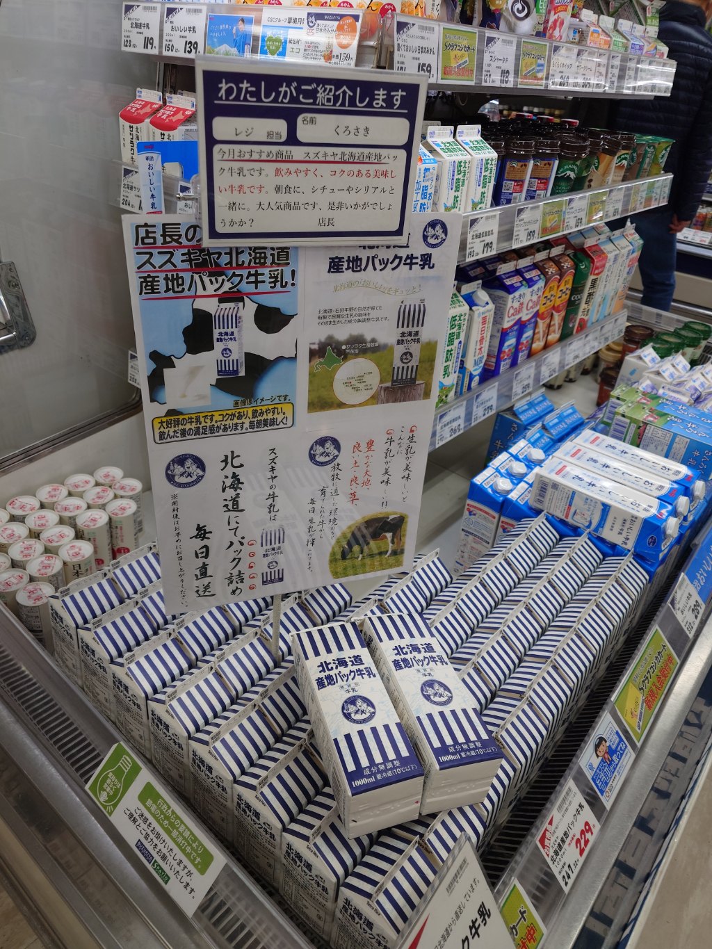 東逗子店にて、スズキヤ産地パック牛乳を、お勧めします!