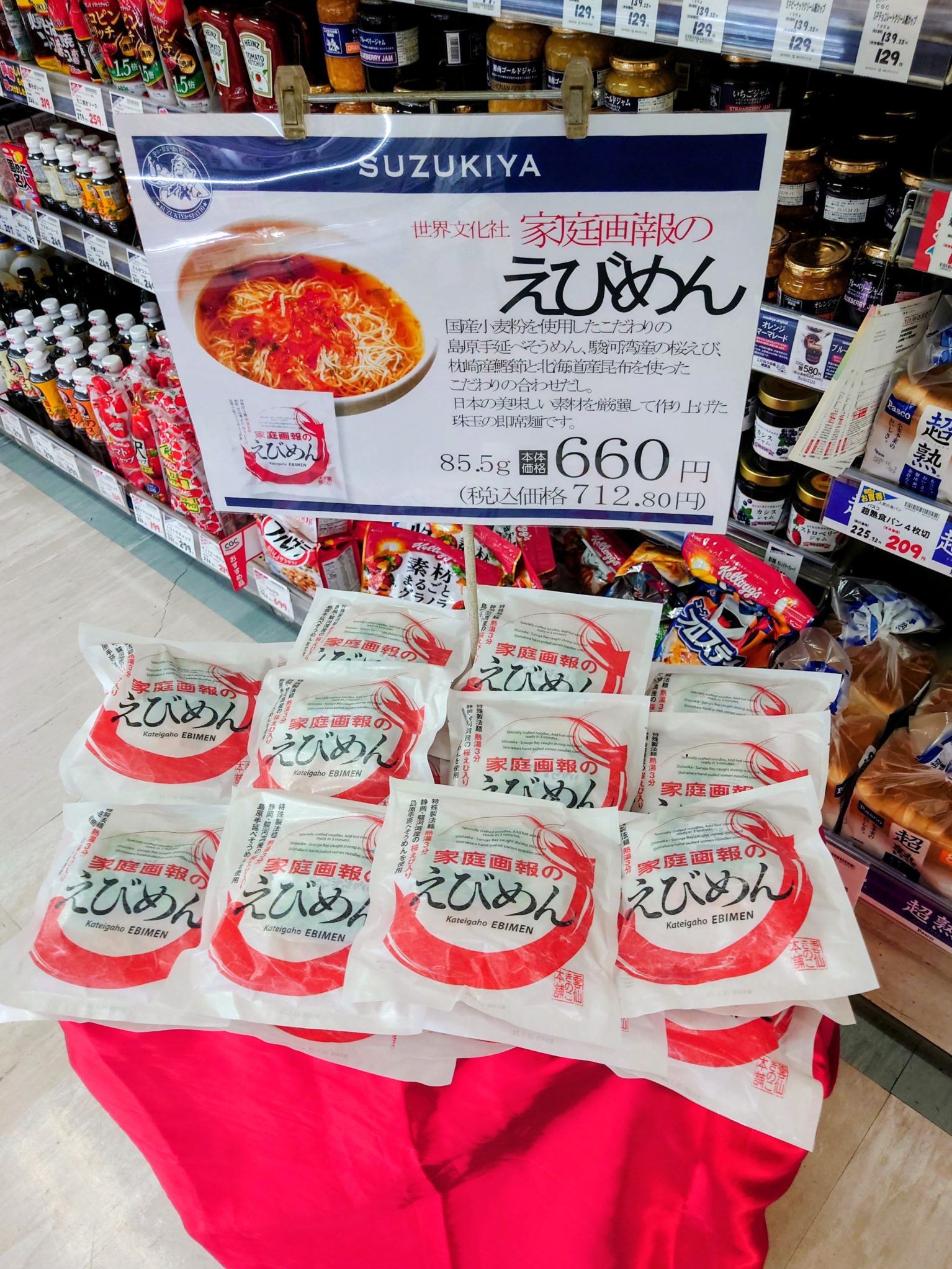 みなさんこんにちは、スズキヤ 東逗子店 店長黒﨑です。当店に家庭画報えびめん入荷しました。