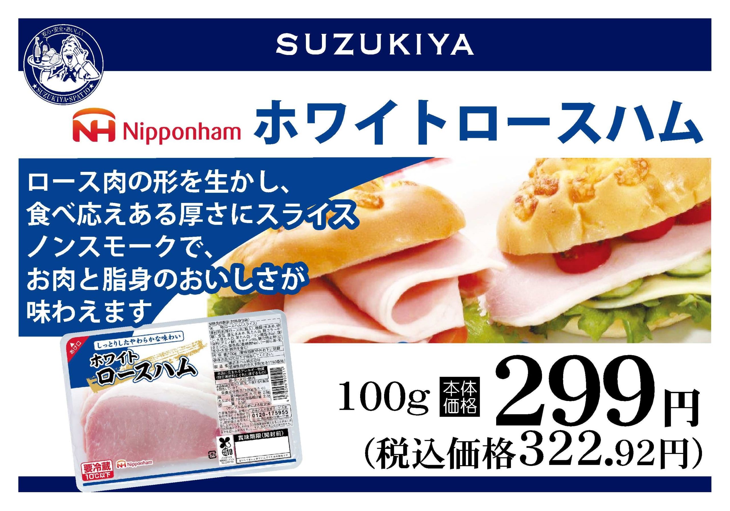 今月おすすめの商品は、日本ハムのホワイトロースハムです。